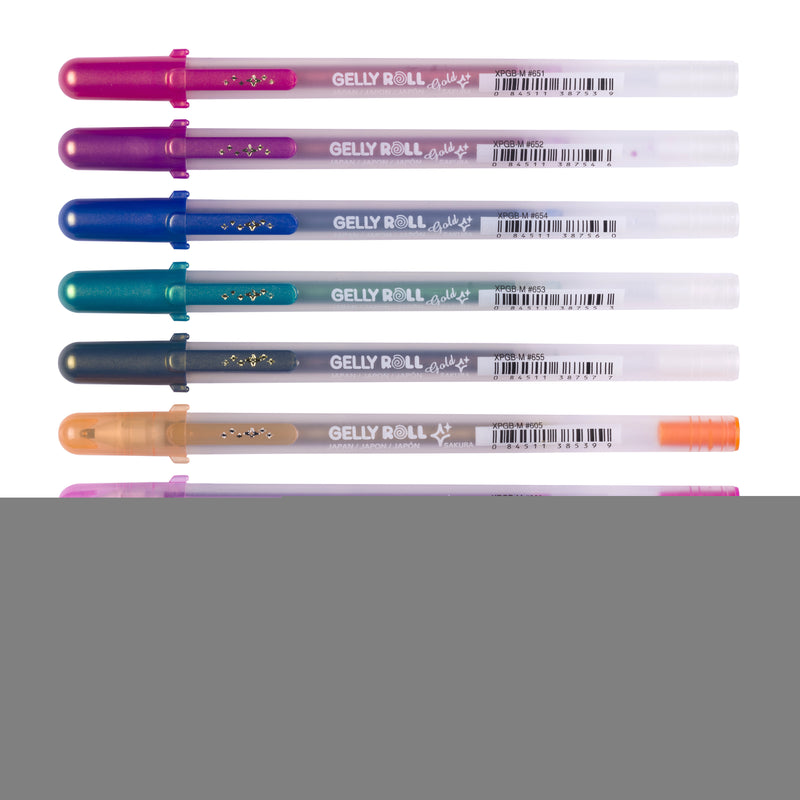 Le penne Gelly Roll Gold Shadow sono perfette per chiunque cerchi un modo per far risaltare la propria scrittura. Che tu stia creando inviti, biglietti fatti a mano, scritte o disegni, queste penne forniscono un risultato sorprendente. L'inchiostro dorato metallizzato con un bordo dai colori vivaci crea un aspetto elegante su carta bianca e porosa.