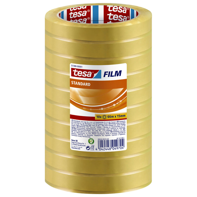 Tesa - Nastro adesivo film® standard 66mx15mm trasparente 10 rotoli