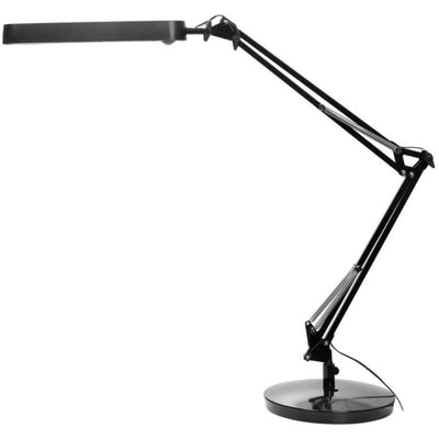 Type lamp: LED 7 W Levensduur: 25 000 uur Helderheid: 600 lumen Temperatuur licht: 3000 Kelvin Sokkel: diameter 20 cm Armlengte: 42 + 39 cm Lampenkap: 30 x 6 cm Met kabel Aan/uit knop op de kop Energieklasse F (Spectrum A tot G) LED's kunnen nietvervangen worden Kleur: zwart
