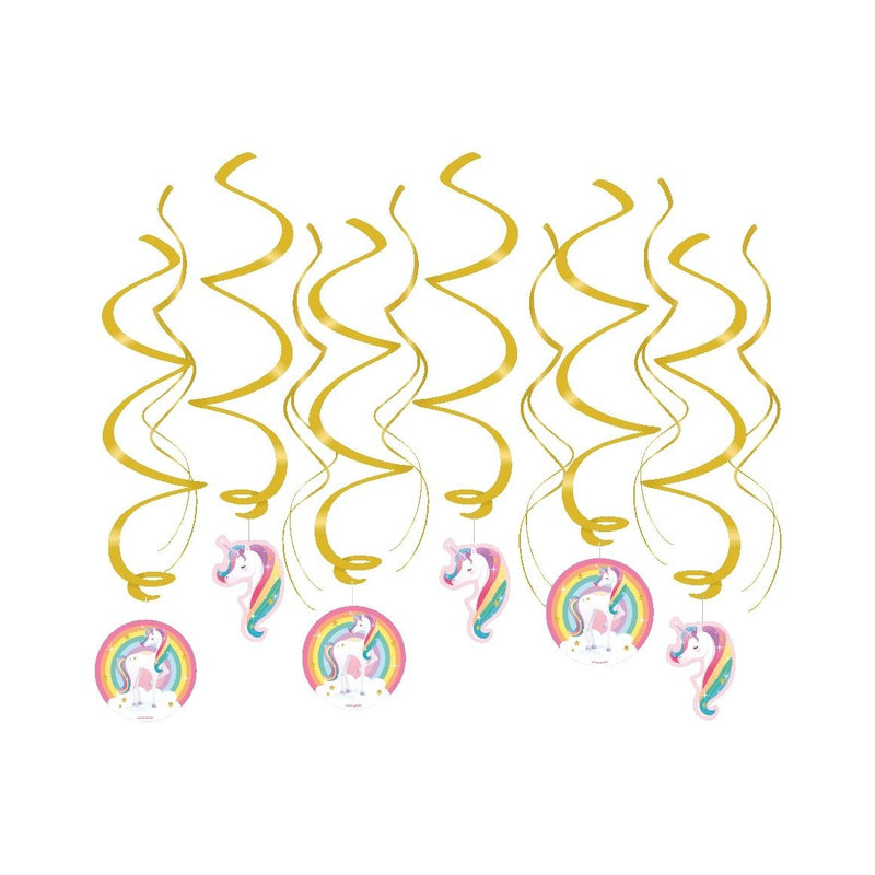 Breng magie naar uw feest met de Unicorns swirl decorations. Deze decoraties zijn ideaal voor het creëren van een betoverende sfeer, perfect voor themafeesten en speciale gelegenheden. Met een lengte van ongeveer 70 centimeter voegen ze een speelse en kleurrijke touch toe aan elke ruimte.
