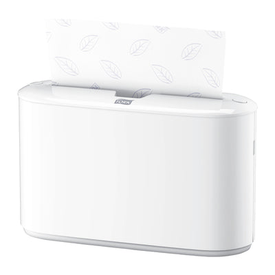 De Tork Xpress multifold countertop handdoekdispenser uit de Tork Elevation-lijn is een geweldig alternatief voor de stapel lossen handdoeken op de wastafel in de toiletruimtes.