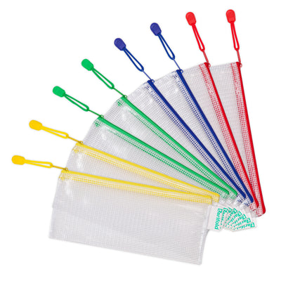 Met interne afmetingen van 245 x 125 mm en externe afmetingen van 250 x 130 mm, zijn deze tassen perfect voor het opbergen van chequeboekjes, reisbonnen, tickets, school
