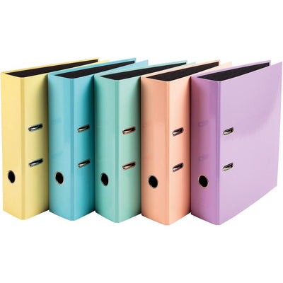 De Aquarel ordner is gemaakt uit stevig karton, bedekt met gekleurd gecoat papier. Voor ft A4 (32 x 28,5 cm). Buitenkant in pastel en binnenkant in zwart papier. De ordner is uitgerust met een Prem'Touch mechaniek, zeer robuust en ergonomisch dankzij de drukknop. Rug van 8 cm voorzien van een grijpgat. FSC Mix gecertificeerd,