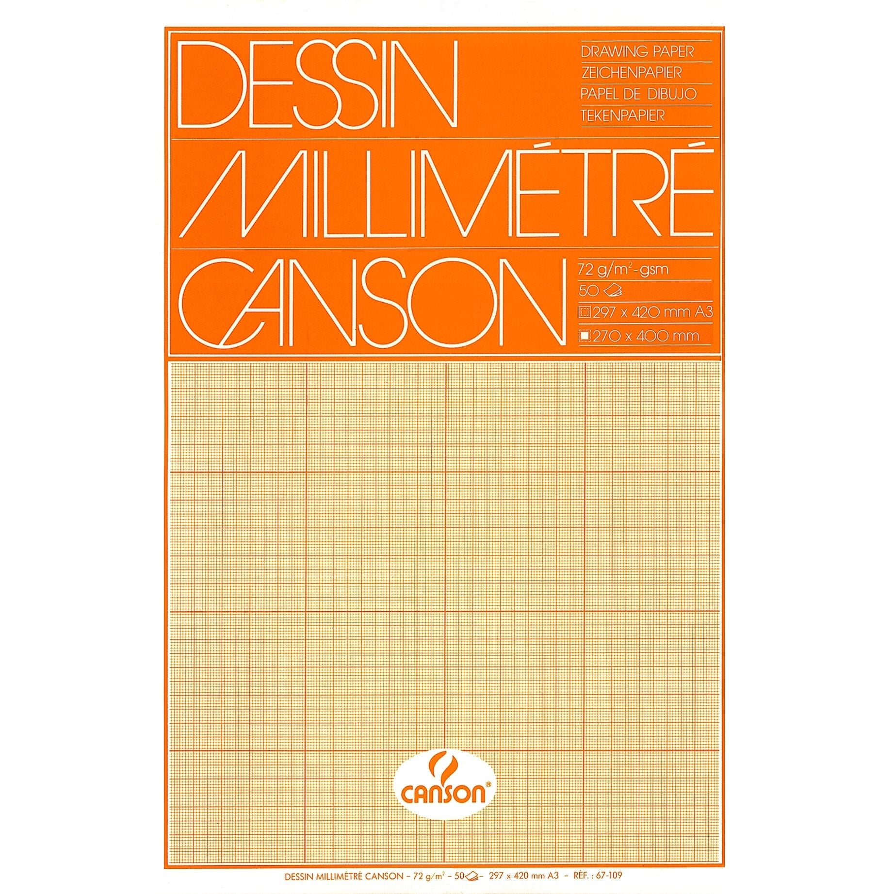 Canson - Millimeterpapier bruingeel bedrukt 50vel 72gr A3 wit | 10 stuks