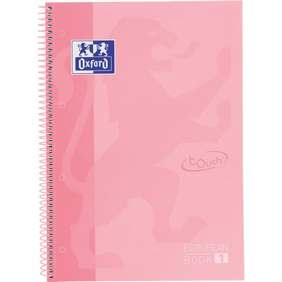 Oxford - School Touch peanbook spiraalblok, ft A4+, 160 bladzijden, geruit 5 mm, pastel roze