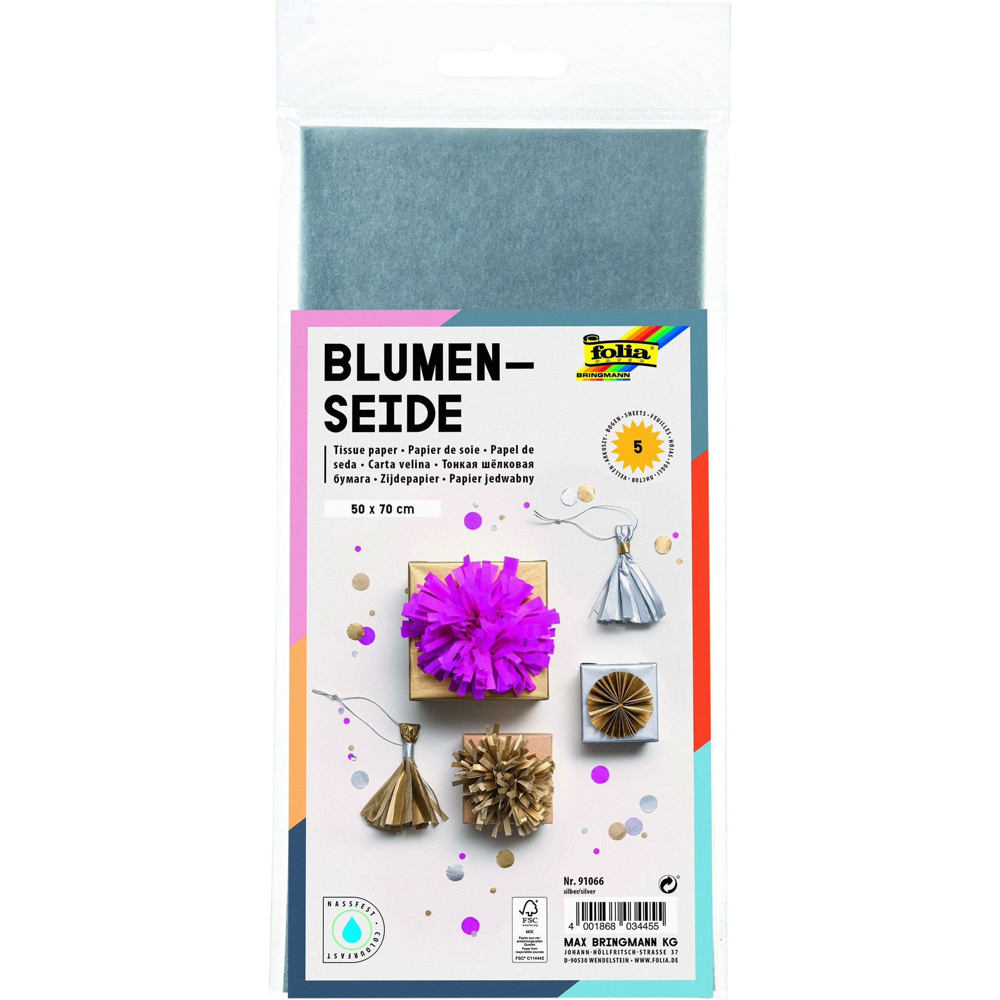 Folia Paper - Zijdevloeipapier Folia 50x70cm 20gr nr66 zilver 5 vel