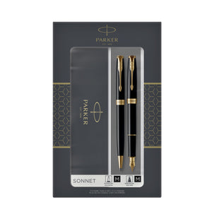 Parker - Balpen en vulpen Sonnet black lacquer GT medium 2 stuks
