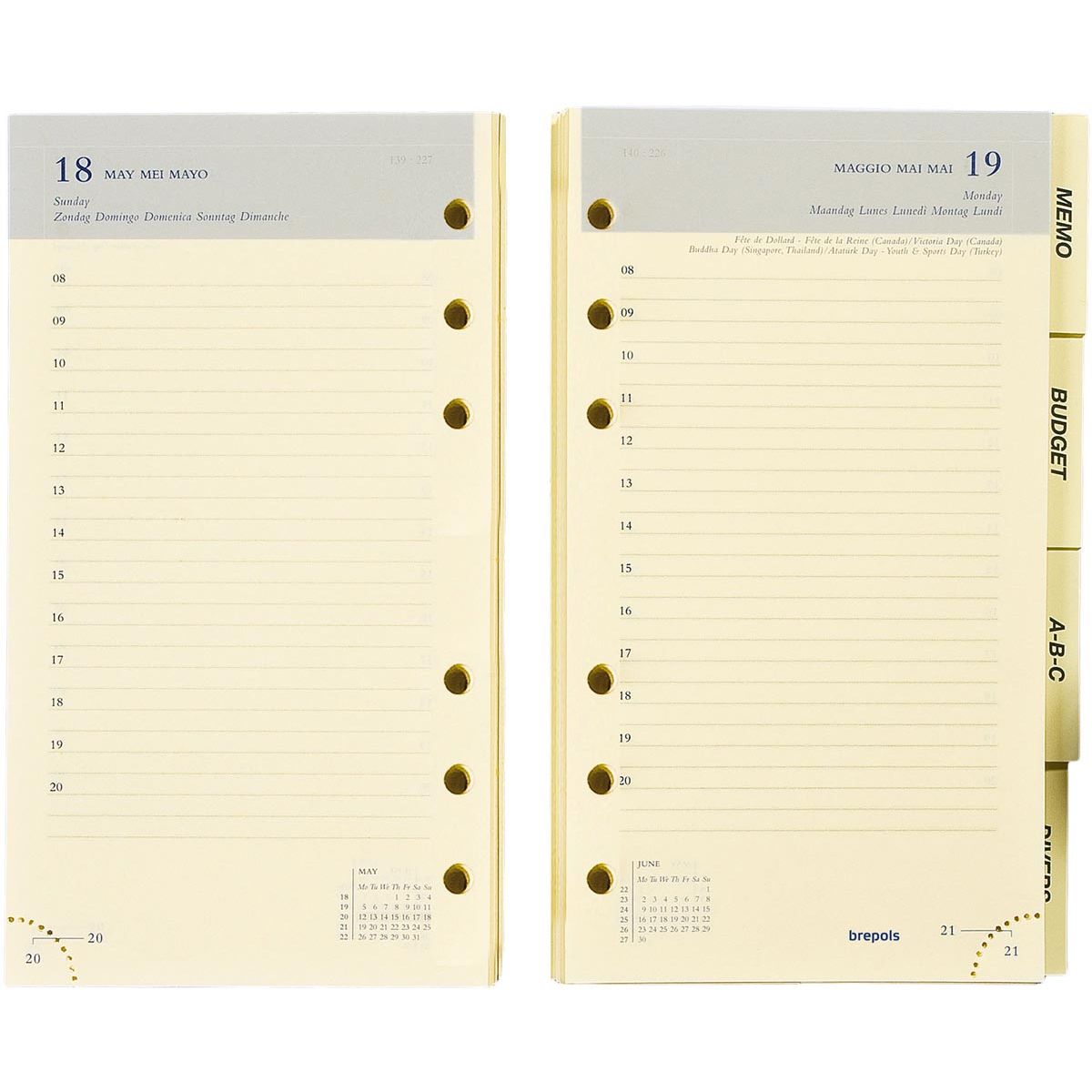1 dag per pagina Uurindeling (8u - 20u) 6-talig Crèmekleurig papier van 80 g/m² Met scheurhoekjes Ft 95 x 170 mm