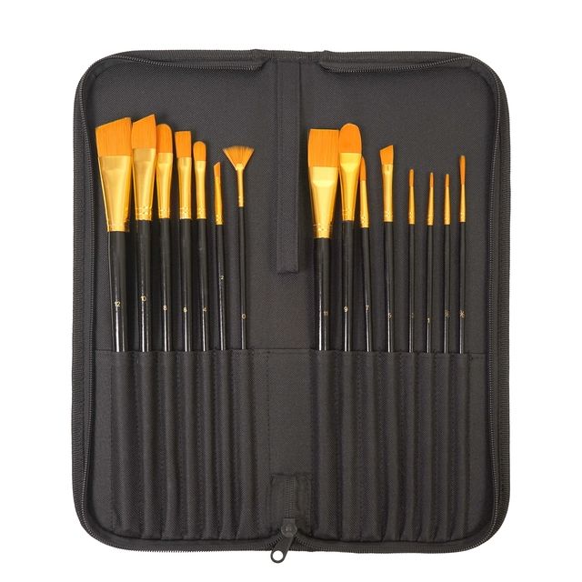 Ontdek de veelzijdigheid en het gemak van deze penselenset, perfect voor zowel de creatieve professional als de hobbyist. Met 15 penselen en kwasten van verschillende diktes, biedt deze set alles wat je nodig hebt voor gedetailleerd en veelzijdig werk, verpakt in een handig bewaaretui.