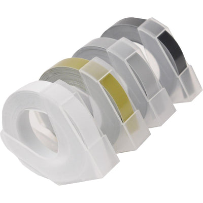 Lettertape geschikt voor de Desq lettertang 5001 (ref. 5001D). Compatibel met Dymo Omega en Junior lettertangen. Ft 9 mm x 3 m. In blisterverpakking met 4 rollen.