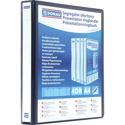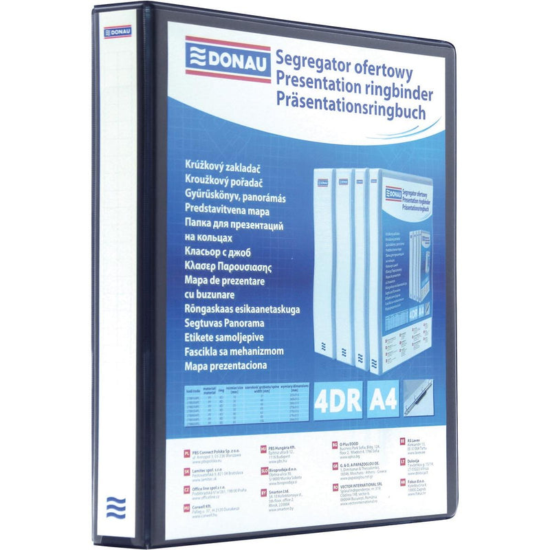 DONAU - personaliseerbare ringmap, PP, ft A4, 4 D-ringen van 30 mm, zwart