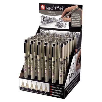 - De Sakura Pigma Micron Fineliners is ideaal voor technische en artistieke toepassingen. Display bestaat uit 36 fineliners met diverse lijndiktes.