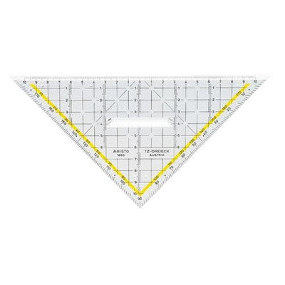 - De Aristo geodriehoek is een multifunctionele tekendriehoek. Te gebruiken als liniaal, driehoek en parallelliniaal. Met horizontale en verticale schaalverdeling.