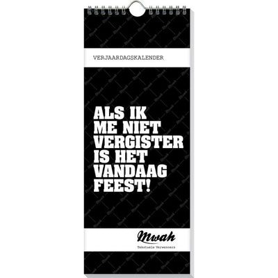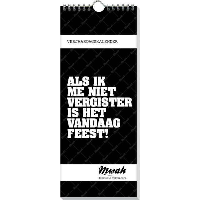 Ontdek de veelzijdige verjaardagskalender die uw jaar op een inspirerende manier in kaart brengt. Met 12 unieke Mwah quotes biedt deze kalender niet alleen een praktische oplossing voor het bijhouden van verjaardagen, maar ook een dagelijkse dosis motivatie en humor.
