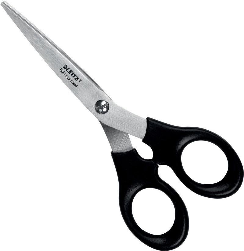 Leitz - schaar, ft 16,5 cm, rechts en links, scherpe punt, RVS, zwart, blister van 1 stuk