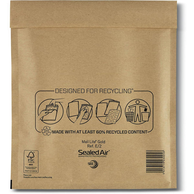 Mail Lite - luchtkussenenveloppen, goud, E/2, 220 x 260 mm, doos van 200 stuks