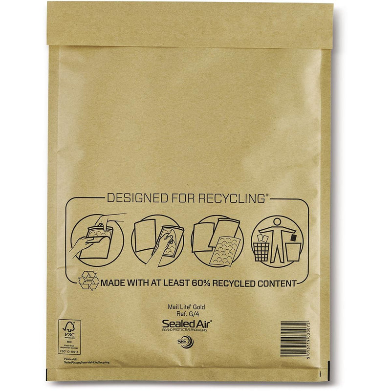 Mail Lite - luchtkussenenveloppen, goud, G/4, 240 x 330 mm, doos van 50 stuks