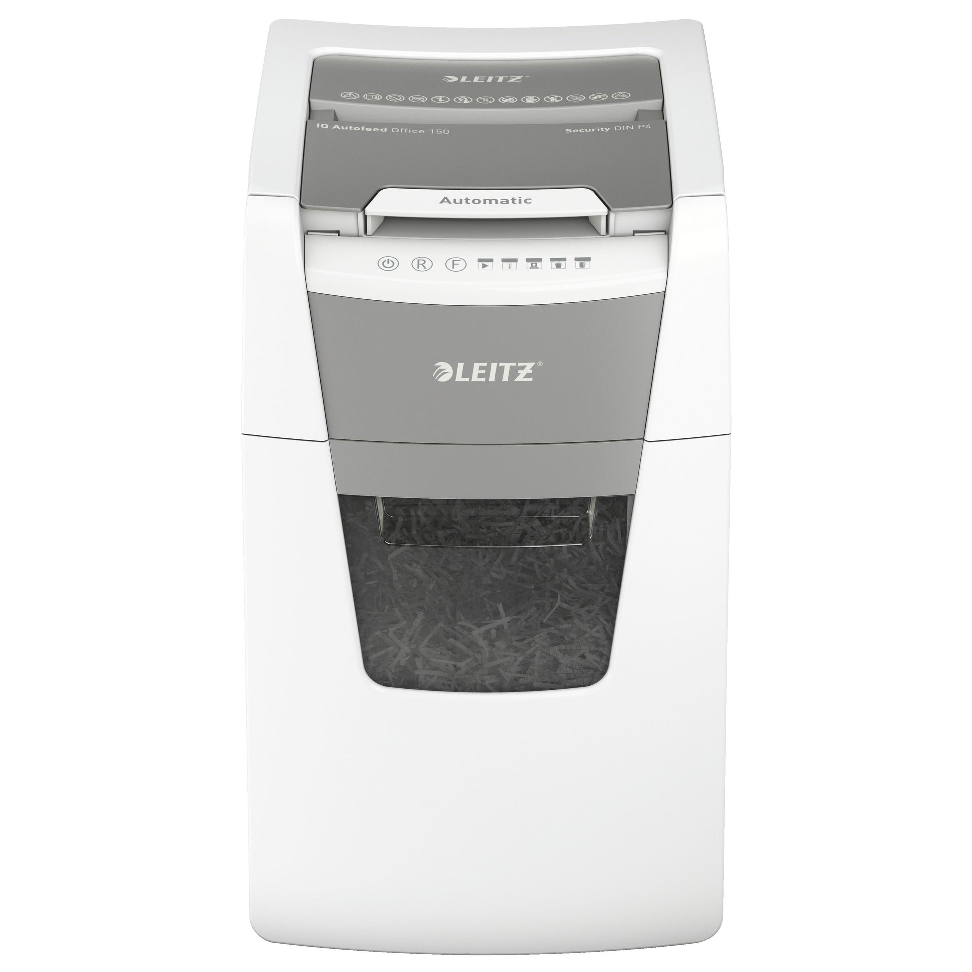 Volautomatische papiervernietiger met automatische invoerfunctie voor maximaal 150 A4-vellen.