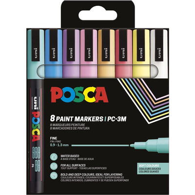 Posca - Uni paintmarker PC-3M, 1,5 mm, etui van 8 stuks in geassorteerde zachte kleuren