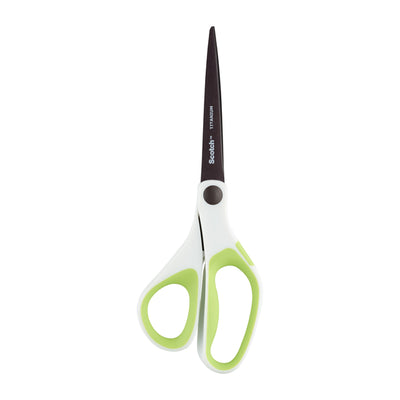 - De Scotch™ titaniumschaar is ideaal voor stof, handwerk en foto's. De met titanium gesmolten snijbladen blijven scherp na 100.000 keer knippen. Zachte, comfortabele vingergrepen, ontworpen voor links- of rechtshandig gebruik.
