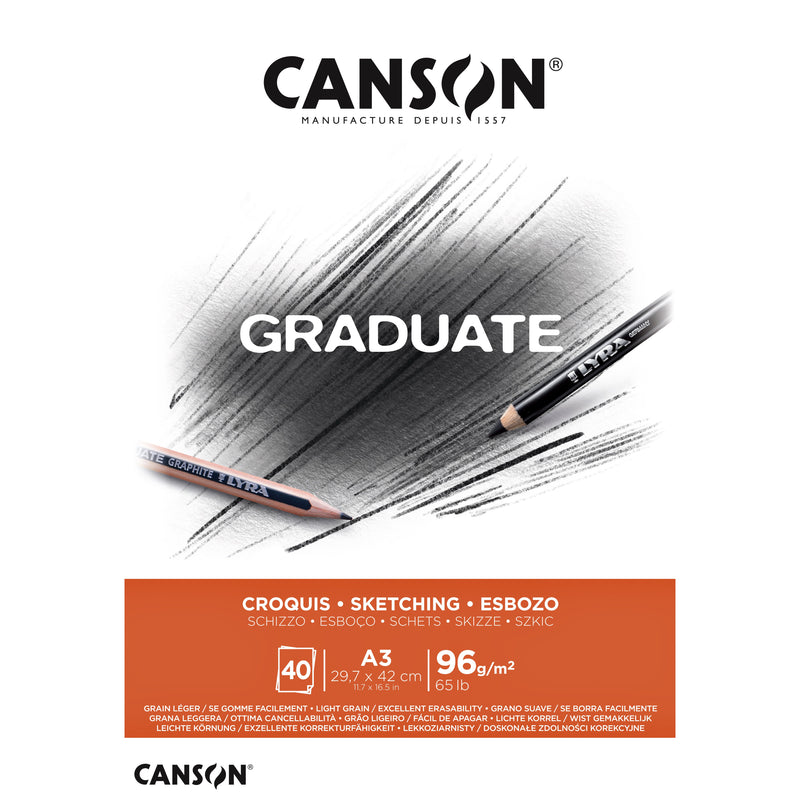 Canson - Schetspapier Graduate Sketch 40vel 96gr A3 natuurlijk wit | 5 stuks