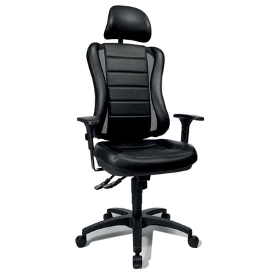 Zelf te monteren Aanpasbare zithoogte Comfortabele XXL zitting in 'bucket' stijl De ergonomisch gevormde rugsteun is in hoogte verstelbaar en zal extra steun bieden voor de onderrug en de lenden Inclusief in hoogte verstelbare armsteunen in het zwart,met zachte pads 'Point-synchro-mechanisme': zorgt ervoor dat de stoel in proportie blijft met het lichaamsgewicht en je lichaamsvorm als je hem verstelt Multifunctionele hoofdsteun die verstelbaar is in hoek en hoogte De zwarte basis uit polyamide is ook geschikt voor tapijten en andere zachte ondergronden Zithoogte: 42 - 53 cm Zitbreedte: 50 cm Zitdiepte: 47 cm Rughoogte: 63 cm Kleur: zwart