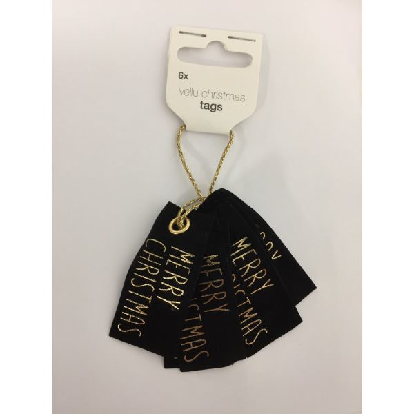 Vellu - Merry Christmas zwart tags 6 stuks