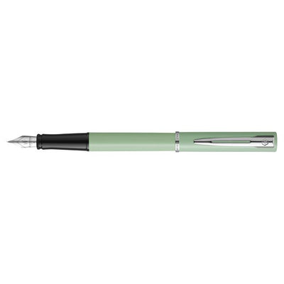 *De Waterman pen heeft een gedurfde, maar elegant pastelkleurige groene afwerking met Franse invloeden en is daarmee een goede eerste stap in de wereld van het fijnschrift.