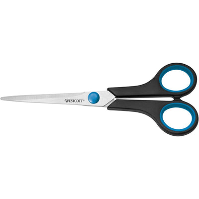 Westcott - schaar Easygrip, ft 17,5 cm, rechts en links, scherpe punt, RVS, blauw/zwart, blister van 1 stuk